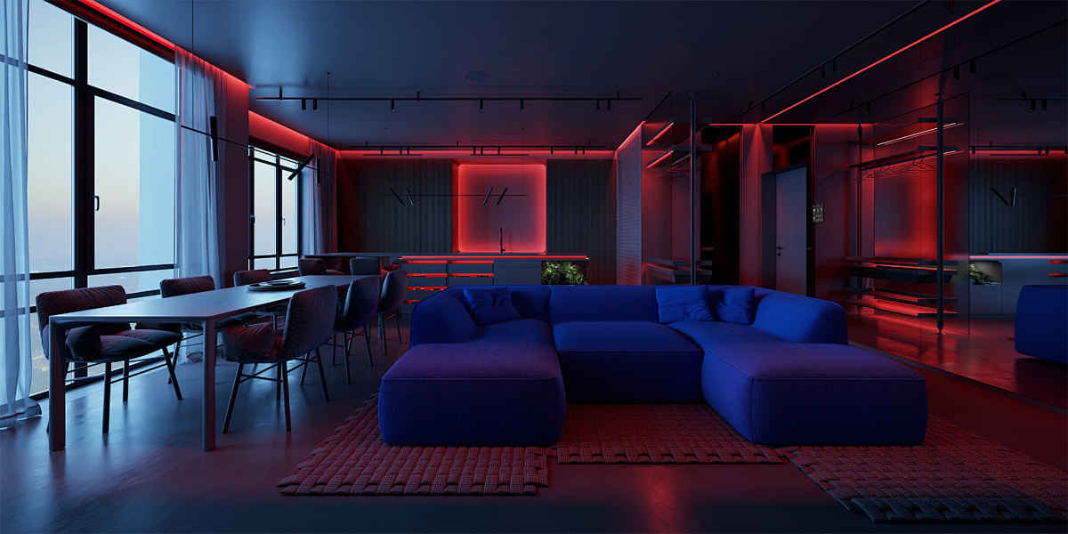 Movie Mode: Combine deep red and navy blue for immersive viewing