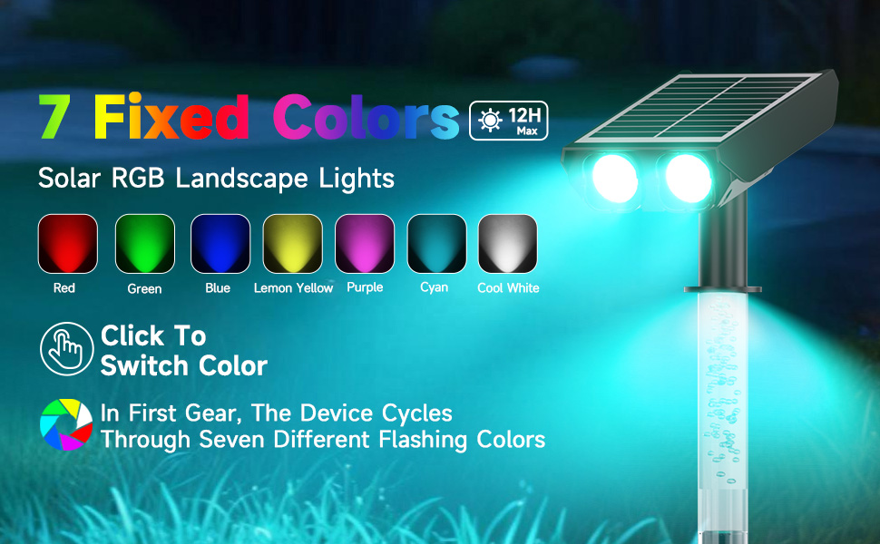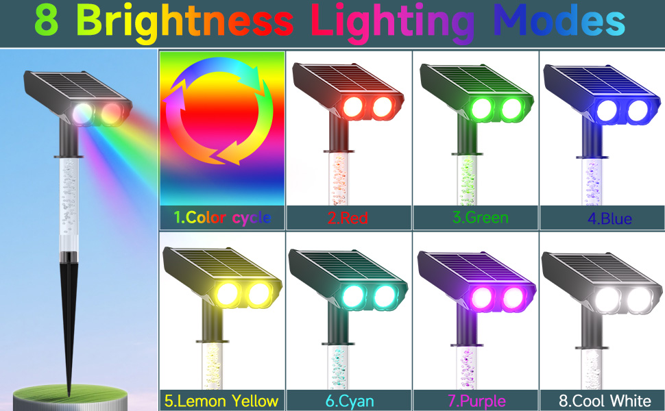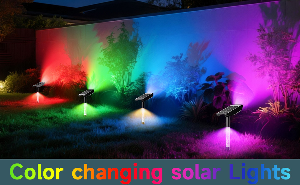 RGB Solar Spot Lights : 2 IN 1 Solar Lights Outdoor with 8 Lighting Modes & PC Light Guide Column for Tree Garden Yard Pathway | RGB Color Changing Landscape Lights | IP65 Waterproof | 4/6/12 Pack